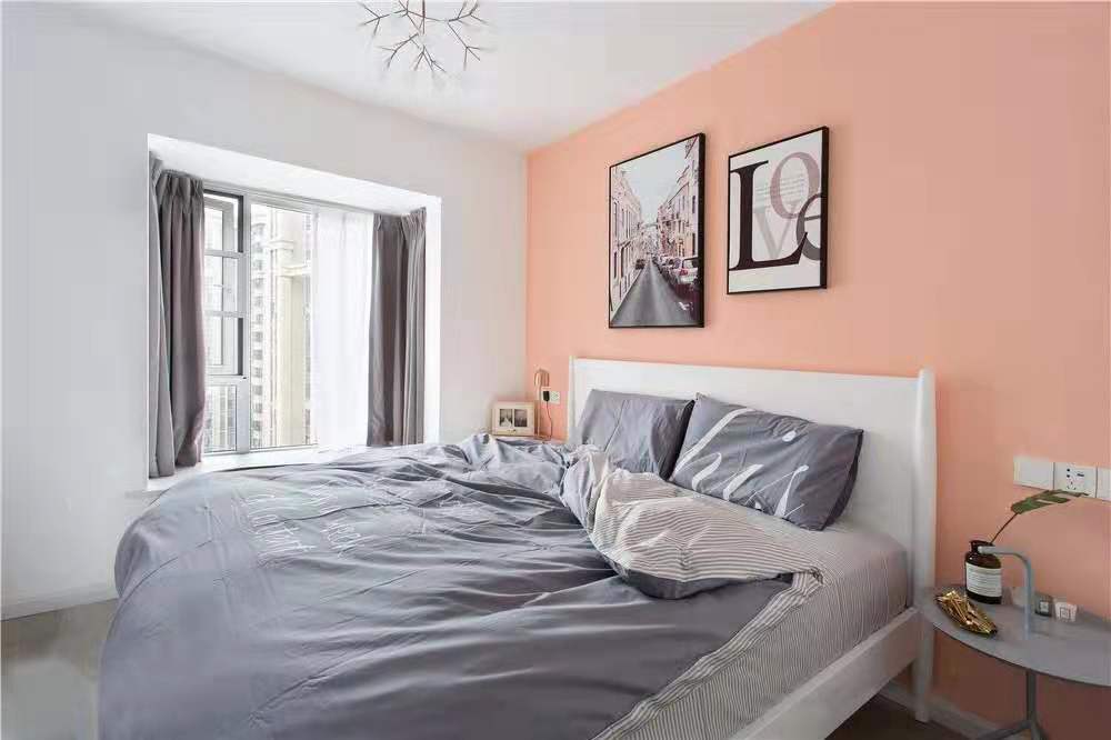 為提高臥室的舒適感,設(shè)計師將女主人喜歡的粉色色度調(diào)灰,采用灰色窗簾、家具,讓整體色調(diào)搭配達到一致。