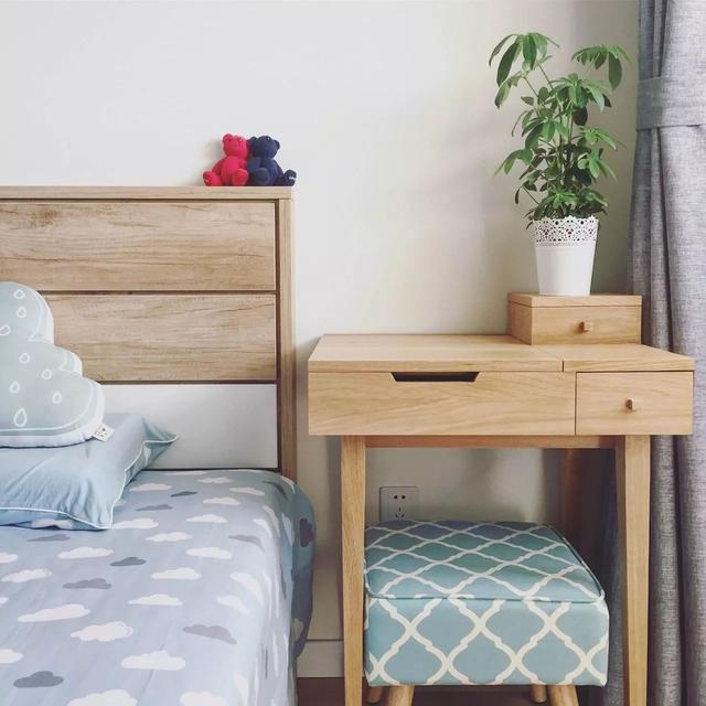 是的,把梳妝臺放在床的側(cè)邊也是個不錯的選擇,剛好挨著窗邊,光線也不會昏暗;