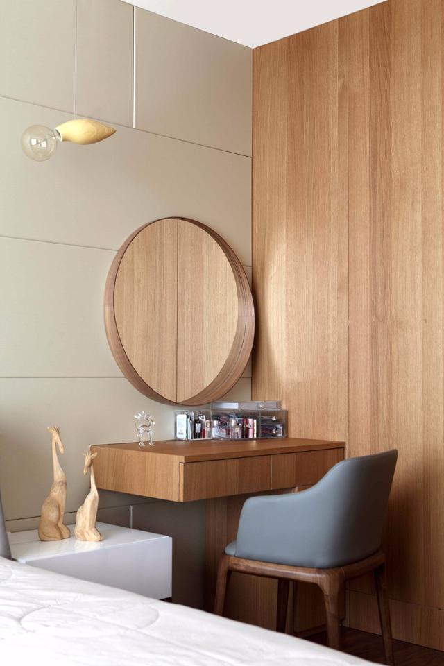 臥室面積有限,直接把梳妝臺做到飄窗;