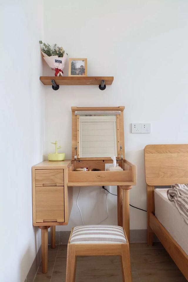 原木色梳妝臺,即可充當電腦桌;