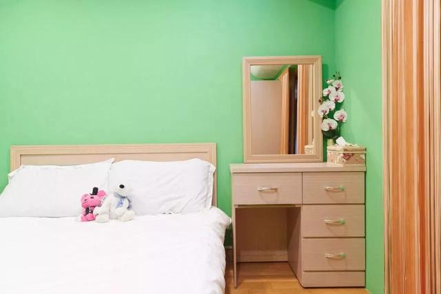 對于面積稍大的臥室,除了擺放床,床頭柜之外,可以把其中一個床頭柜撤掉,放梳妝臺,倘若面積足夠大的,仍然可以保留床頭柜;