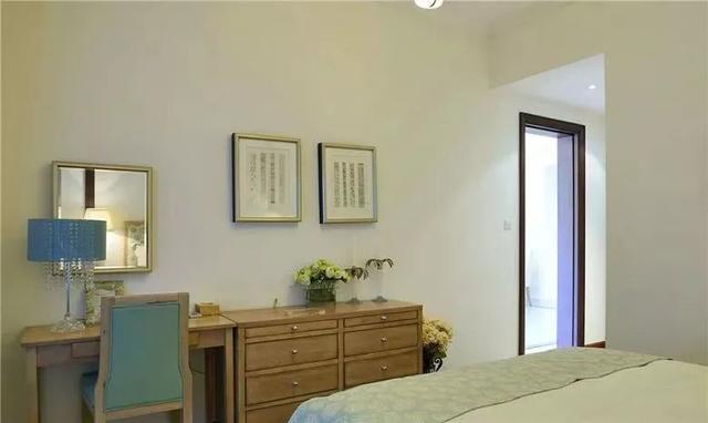 對于臥室面積較小,然后又想放兩個床頭柜的業(yè)主,不妨可以把梳妝臺放在電視墻,與電視柜平齊排放;